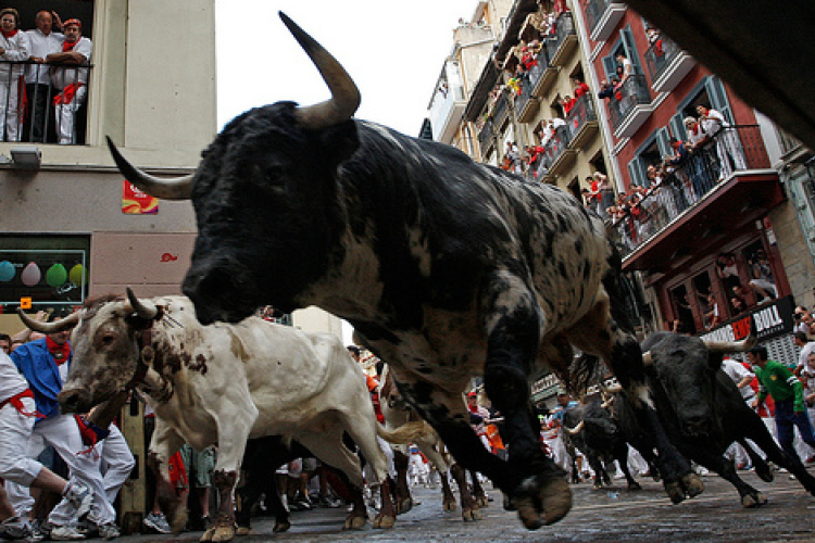 \"Pokol\" a bikák számára a pamplonai San Fermín-ünnep, amely bikafutatásairól lett világhírű