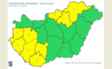 Szombatra csaknem az egész országra figyelmeztetéseket adott ki heves zivatar, illetve felhőszakadás veszélye miatt az Országos Meteorológiai Szolgálat.