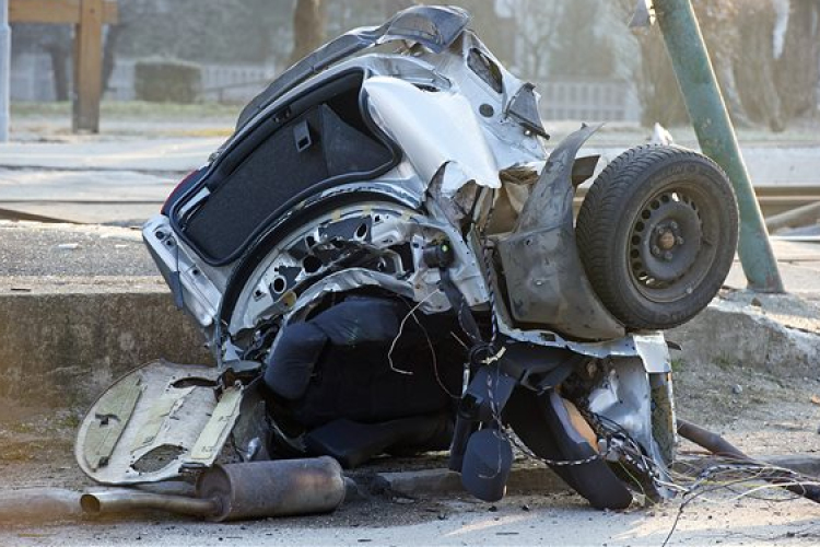 Brutális baleset Budakalászon – kettészakadt egy autó