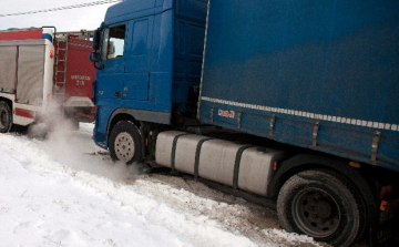 Havazás miatt elakadt kamionok nehezítik a közlekedést Nógrádban