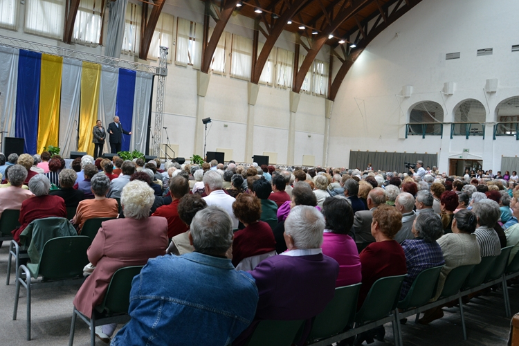 A Sportcsarnokban köszöntötték az Idősek Világnapja alkalmából Makó nyugdíjasait ma délután.