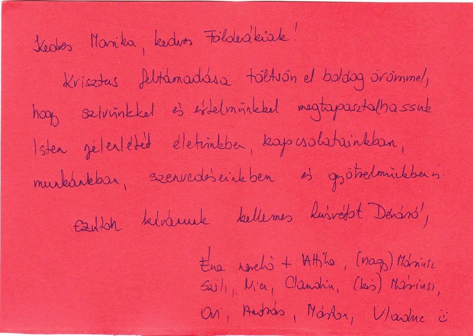 A gyerekek az alábbi képeslapon kívántak Kellemes Húsvétot az adakozóknak.
