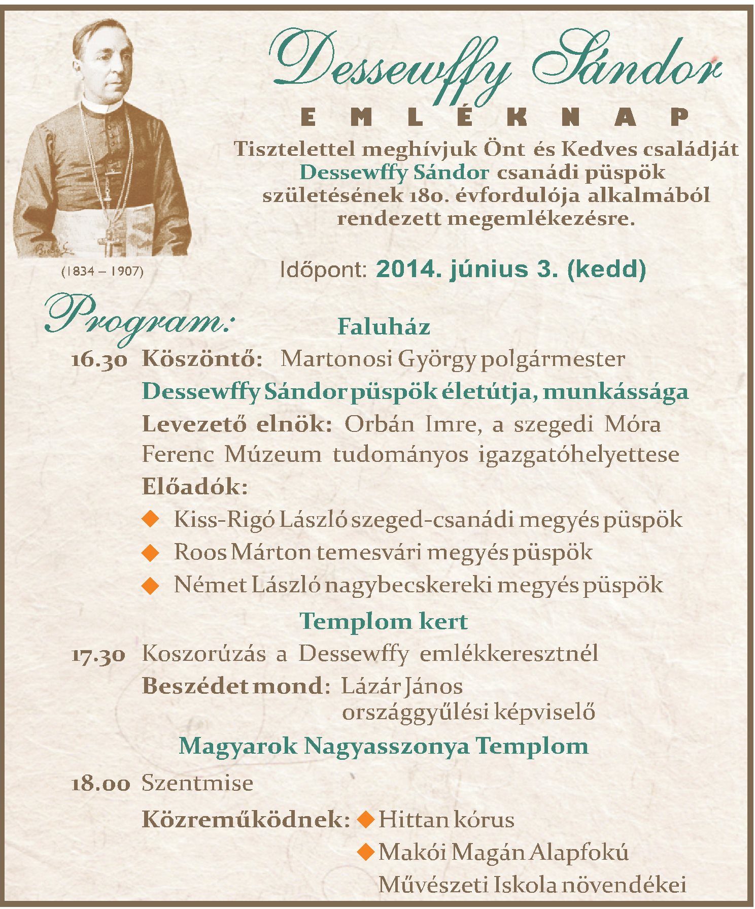Az emléknap ezután a Templom kertben folytatódik majd, 17.30-tól koszorúzás következik a Dessewffy emlékeresztnél, beszédet fog tartani Lázár János, országgyűlési képviselő.