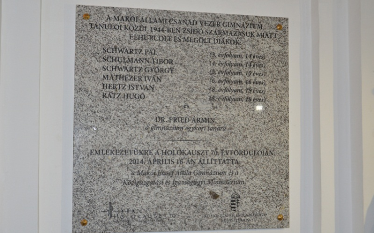 Ma országszerte megemlékezéseket tartanak a holokauszt áldozatainak emlékére, a makói József Attila Gimnáziumban ebből az alkalomból emléktáblát avattak és elültették a megemlékezés mandulafáját.