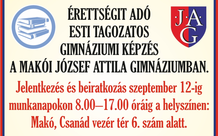 Érettségit adó esti tagozatos gimnáziumi képzés indul a makói József Attila Gimnáziumban.