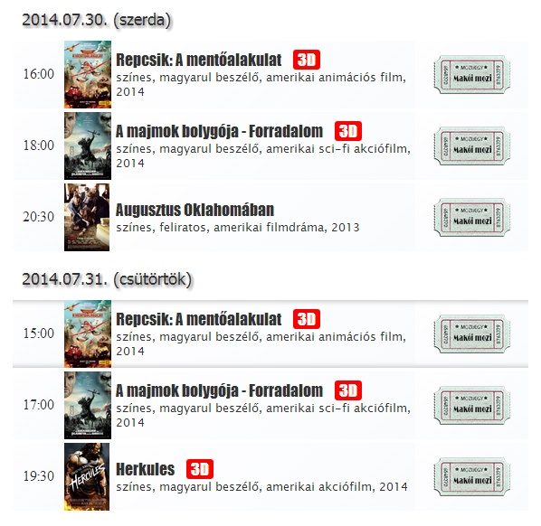 Helyfoglaláshoz ki kell választani a megnézni kívánt filmet, rákattintani, és kiválasztani az ülőhelyet. www.makoimozi.hu