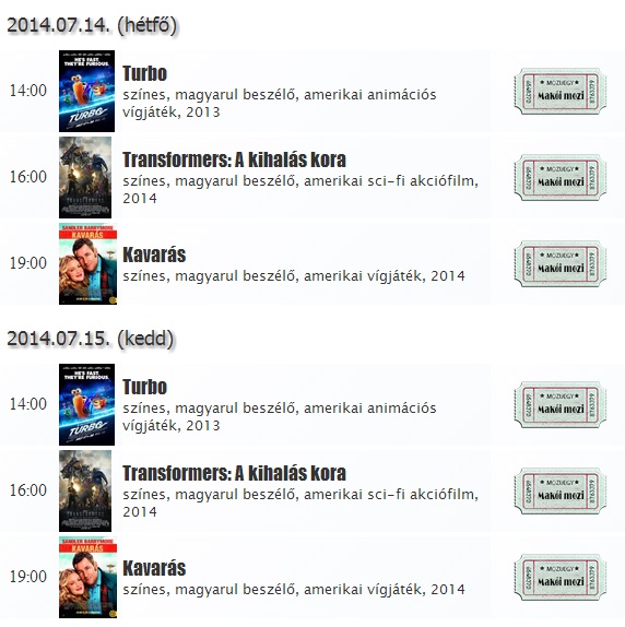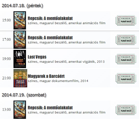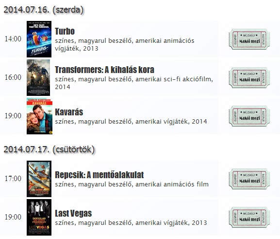 Vásárolja online Mozi jegyét. www.makoimozi.hu