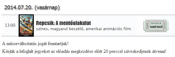 Helyfoglaláshoz ki kell választani a megnézni kívánt filmet, rákattintani, és kiválasztani az ülőhelyet.