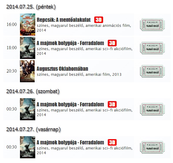 Vásárolja online Mozi jegyét. www.makoimozi.hu