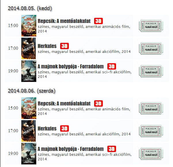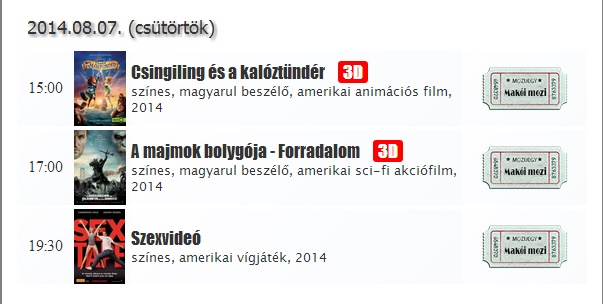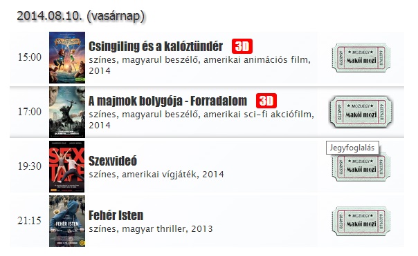 Helyfoglaláshoz ki kell választani a megnézni kívánt filmet, rákattintani, és kiválasztani az ülőhelyet. www.makoimozi.hu