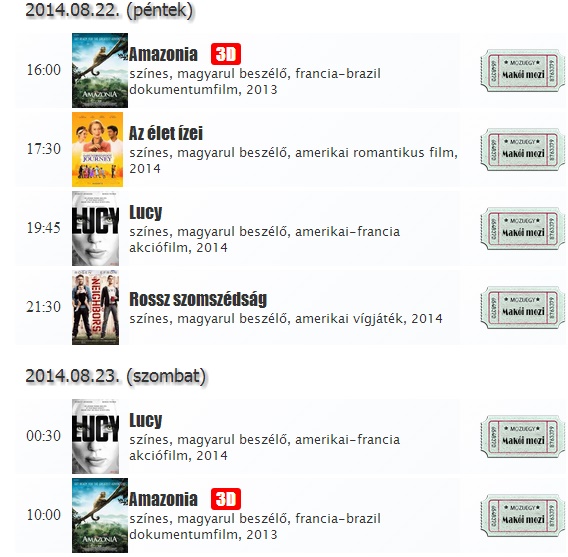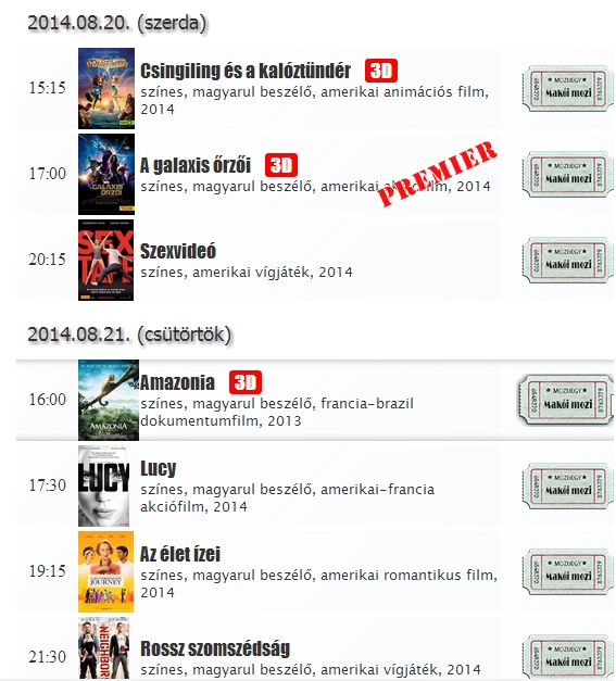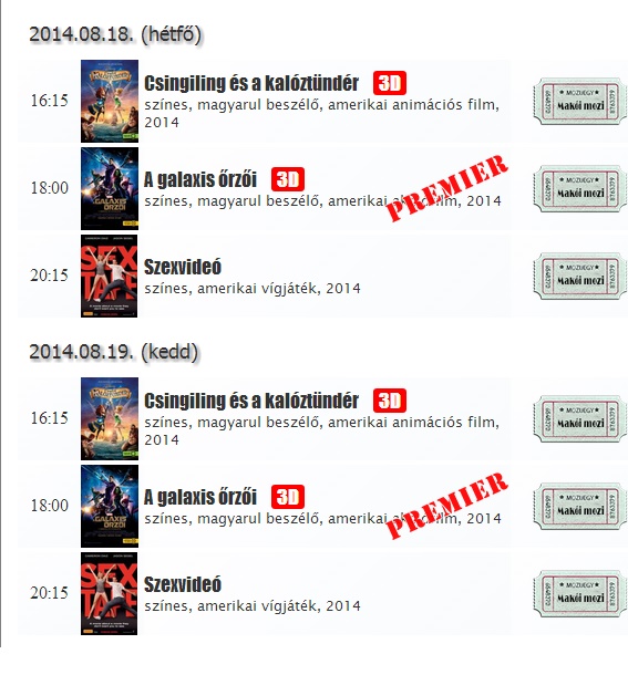 Helyfoglaláshoz ki kell választani a megnézni kívánt filmet, rákattintani, és kiválasztani az ülőhelyet. www.makoimozi.hu