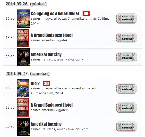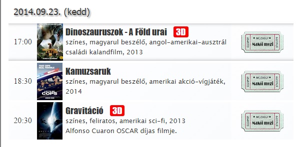 Helyfoglaláshoz ki kell választani a megnézni kívánt filmet, rákattintani, és kiválasztani az ülőhelyet. www.makoimozi.hu