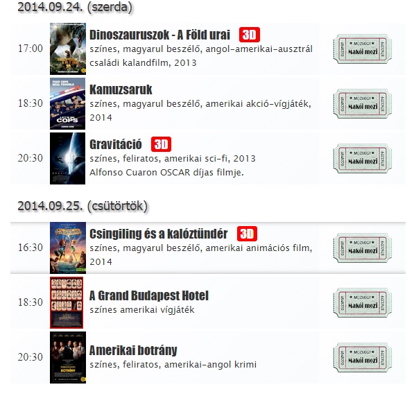 Vásárolja online mozijegyét. www.makoimozi.hu