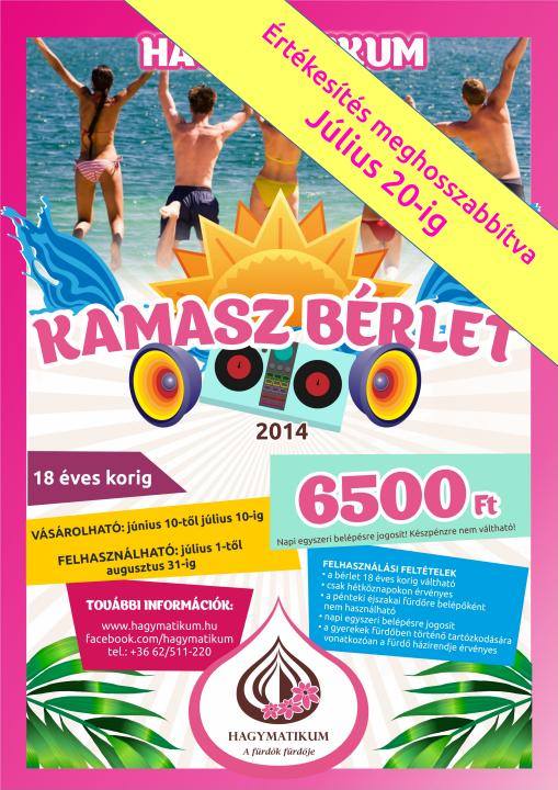 A nagy érdeklődésre való tekintettel a Hagymatikumba szóló kamaszbérletet július 20-ig, azaz most vasárnapig lehet megvásárolni!