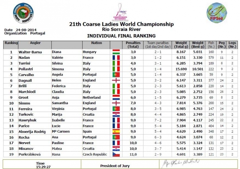 Az Antal Gréta, Kovács Hajnalka, Gyulánszki Nikolett, Rudnai Csilla, Walter-Barna Diána összetételű csapat is hatalmasat hajrázott, vasárnap mindössze 26 pontot gyűjtve jelentősen feljebb lépett és a mezőny első felébe tornázta fel magát! Csapatban végül az olaszok nyertek, a franciák és a házigazda portugálok előtt!- írja a fishingtime.hu magazin.