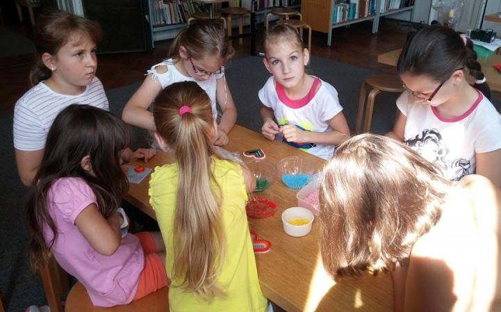 Már javában tart a nyári szünidő, amelynek apropóján egész hetes kézműves játszóházi foglalkozást hirdetett a Makói Gyermekkönyvtár. A foglalkozáson hasznosan tölthetik szabadidejüket a gyerekek, hiszen különböző kreatív technikákkal ismerkednek meg, úgy mint: gyöngyfűzés, decoupage képkészítés. Ottjártunkkor ügyesen dolgoztak a szorgos kezek: éppen vasalható gyöngyből készítettek díszeket.