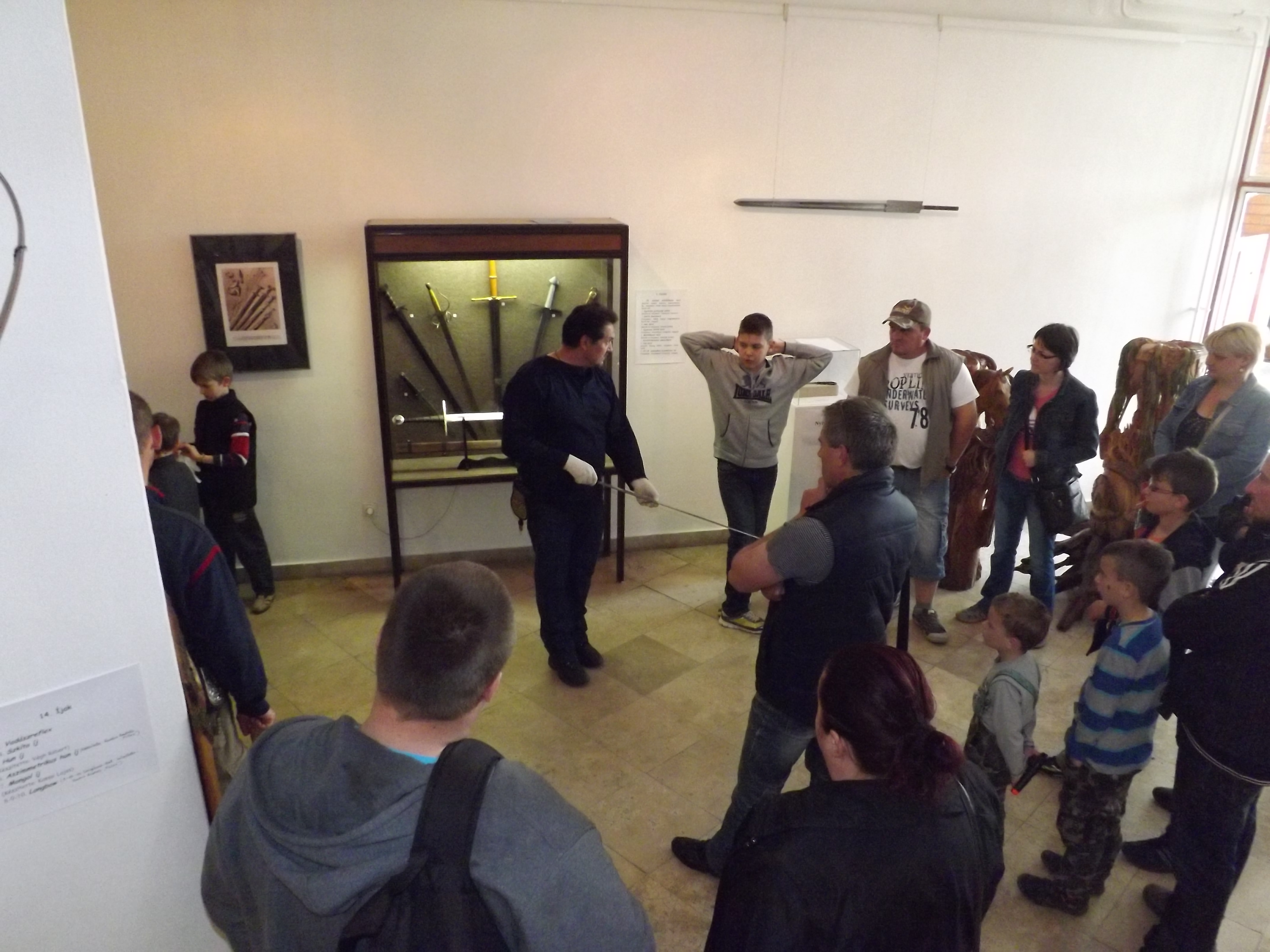 A tárlatvezetést hasonlóan a múltkorihoz Pintér Attila, fegyvergyűjtő tartotta. A fegyverek között sok a másolat, de akadnak köztük eredetiek is. A kardok nyeléhez bárki kézzel hozzáérhetett, de az éléhez kizárólag csak kesztyűben.