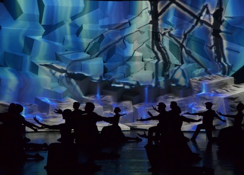 Az előadás egyik legnagyobb érdekessége, hogy lenyűgöző, Szegeden eddig még nem látott látvány fogadja majd a közönséget. Dmitrij Simkin díszlettervező bonyolult, geometrikus, már-már kubista teret képzelt el, melyet egyrészt többlépcsős szerkezete tesz izgalmassá, másrészt a speciális, 3D vetítéstechnika, mely amellett, hogy jelenetfestő funkcióval bír, egészen elképesztő vizuális effektekre is képes.