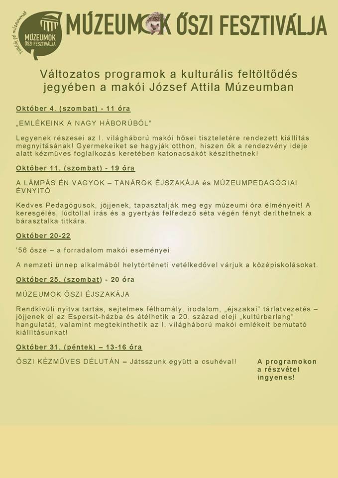 A makói József Attila Múzeum még két hétig várja az érdeklődőket a Múzeumok Őszi Fesztiválja keretében!