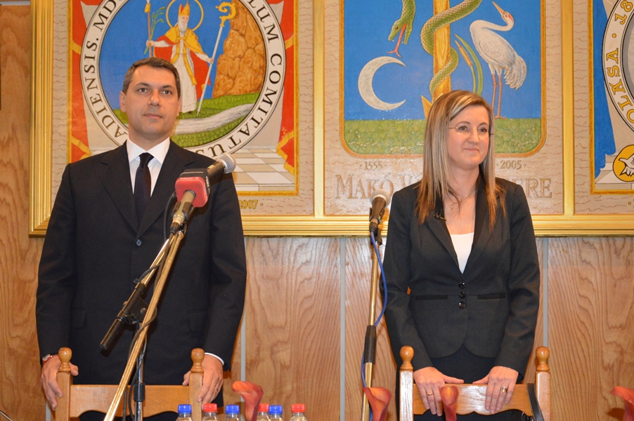 Petrik Orbánné, a Makó és térsége választási bizottság elnöke kezdte meg az ünnepi, alakuló ülést, amelynek keretében kiosztották a képviselői mandátumokat, kihirdették az önkormányzati választások hivatalos eredményét és letették az esküt a képviselők és a polgármester. Az eseményen részt Lázár János, miniszterelnökséget vezető miniszter, a körzet országgyűlési képviselője.