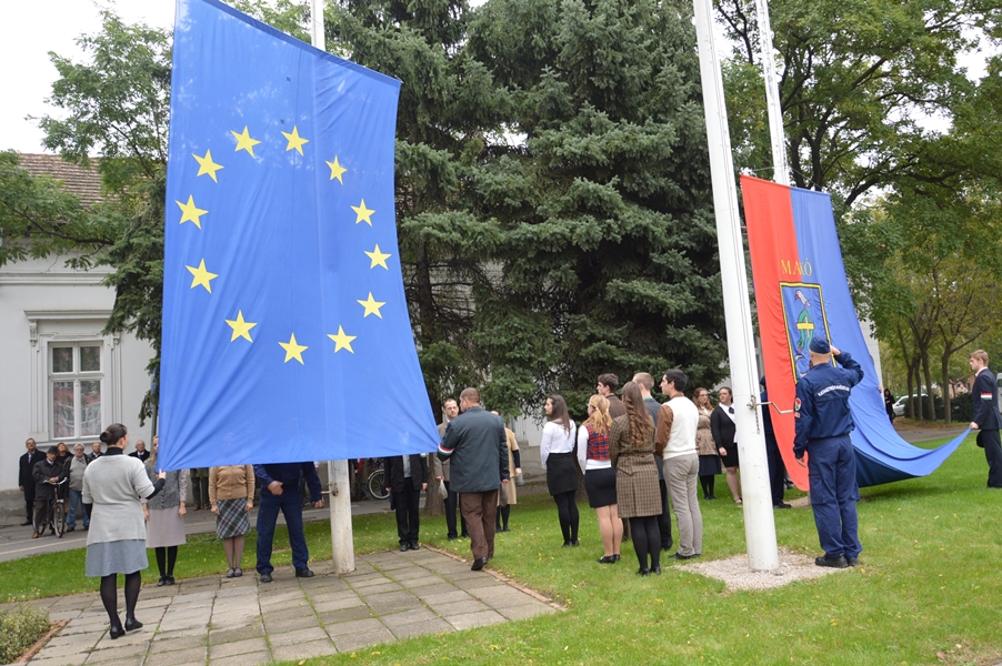 Az ünnepi ülés után a testület együtt jelent meg az ünnepélyes zászlófelvonáson.