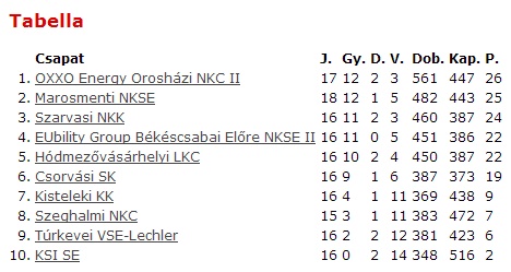 MNKSE:CSEH- Wöller 2, MÉREG 5, GYENGE 5/3, Zombori 1, NAGY N 4, Nagy F 1. Csere: KÁDÁR, Murvai 2, Brakszatórisz 2, Csák, Szalay 1.
