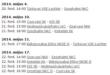 Az ellenfelek hátralévő mérkőzései: