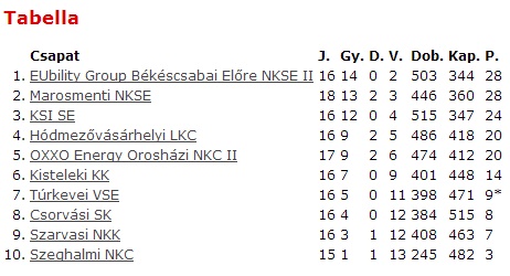 A felnőtt tabella jelenleg: