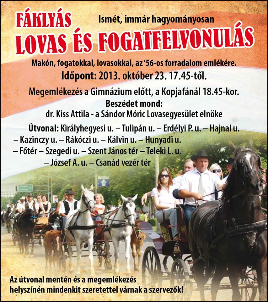 Október 23-i programok Makón: Alakuló ülés, lovasfelvonulás, megemlékezés, koszorúzás...
