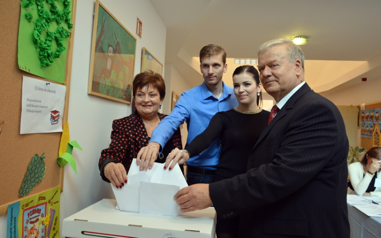 Makó jelenlegi polgármestere, Buzás Péter az Erdélyi püspök utcai óvodában szavazott feleségével és gyermekeivel.