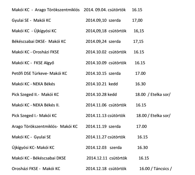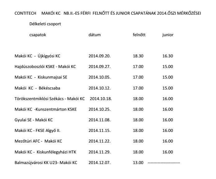 Makói KC: Felnőtt, junior és OSB sorsolás
