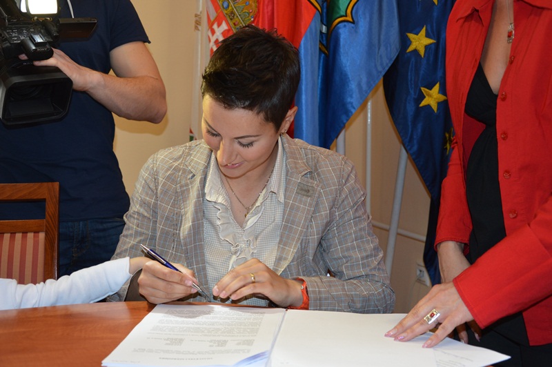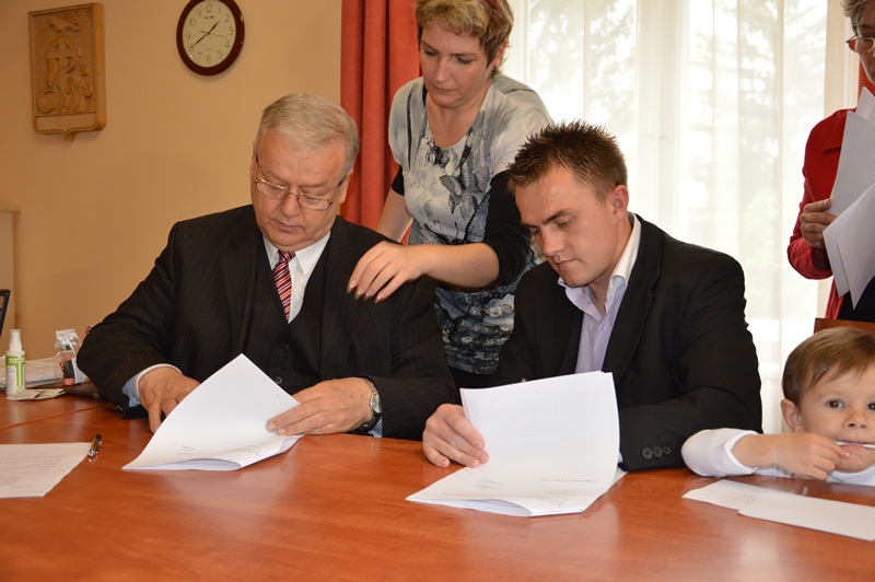 A fiatal pár a mai nap során aláírták az ingyenes ingatlan átruházási szerződést, amelynek értelmében 1,2 millió forintos támogatást kapnak. A megállapodás értelmében 24 hónap alatt kell teljesíteni a pályázati követelményeket (lakóingatlan létesítése, használatba vételi engedély, beköltözés, állandó lakcímként való bejelentés).